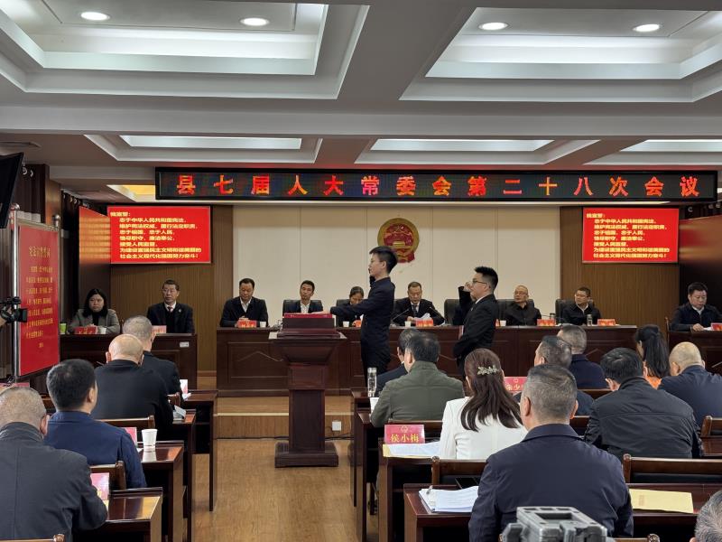 2025年11月8日上午,县人大常委会主任汪新华主持召开县七届人大常委会第二十八次会议,张海涛、王军、薛文新、黄汉江、姚巍、何文平等30名常委会组成人员参加会议,县人民政府、县监察委员会、县人民法院、县人民检察院相关负责同志列席会议。